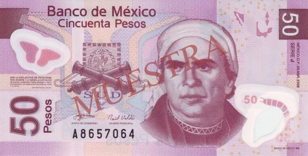 Con el texto "50 PESOS" situado verticalmente al centro izquierdo.